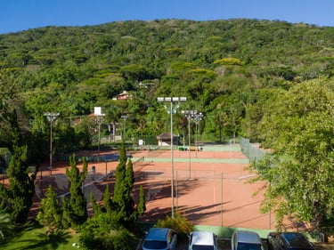 Condomínio de alto padrão, com estrutura completa de lazer e bem-estar. Conta com piscina aquecida(foto), piscina externa, sauna, academia, quadras de tênis, churrasqueira externa e amplos espaços de convivência. A área verde é extensa, com árvores frutíferas, horta e contato direto com a natureza.