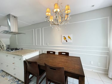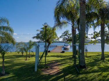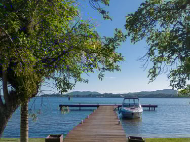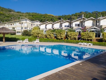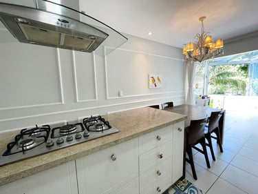 Casa mobiliada, com ambientes amplos e integrados, pensada para conforto e conexão com a natureza. Com sala de TV e biblioteca, cozinha e espaço de refeições com churrasqueira, em integração direta com a varanda e o gramado, criando uma experiência de “pé na grama” com vista para a lagoa.