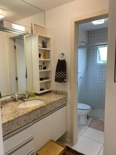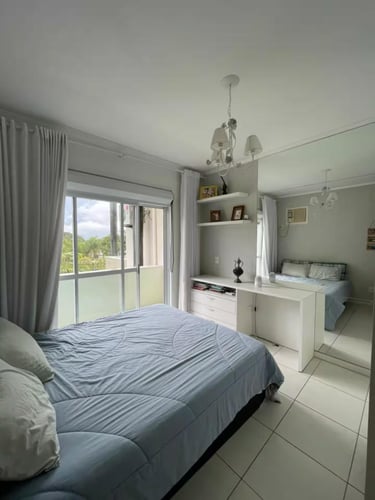 São dois quartos com varanda, sendo uma suíte, além de um segundo banheiro completo. A casa conta ainda com espaço funcional de apoio (lavanderia), climatização nos ambientes e está pronta para morar.